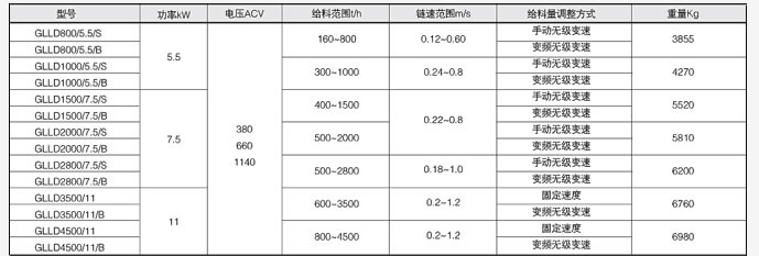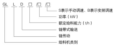 示例:客定給料能力為1000t/h,裝載功率為5.5KW的手動(dòng)調(diào)速鏈帶式給料機(jī)型號(hào)表示為GLLD1000/5.5/S